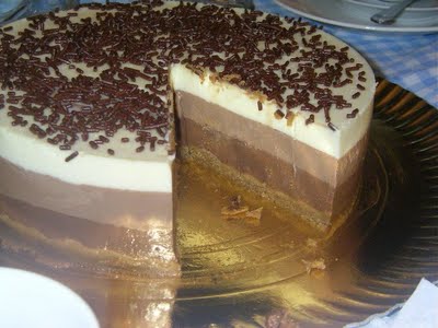 Receta de la tarte de 3 chocolates realizada con la Thermomix. Presenta un postre espectacular con esta tarta.